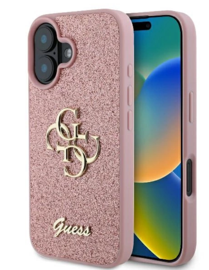 Guess Ümbris GUHCP16SHG4SGP PU Fixed Glitter 4G Metal Logo Case for iPhone 16 (roosa)