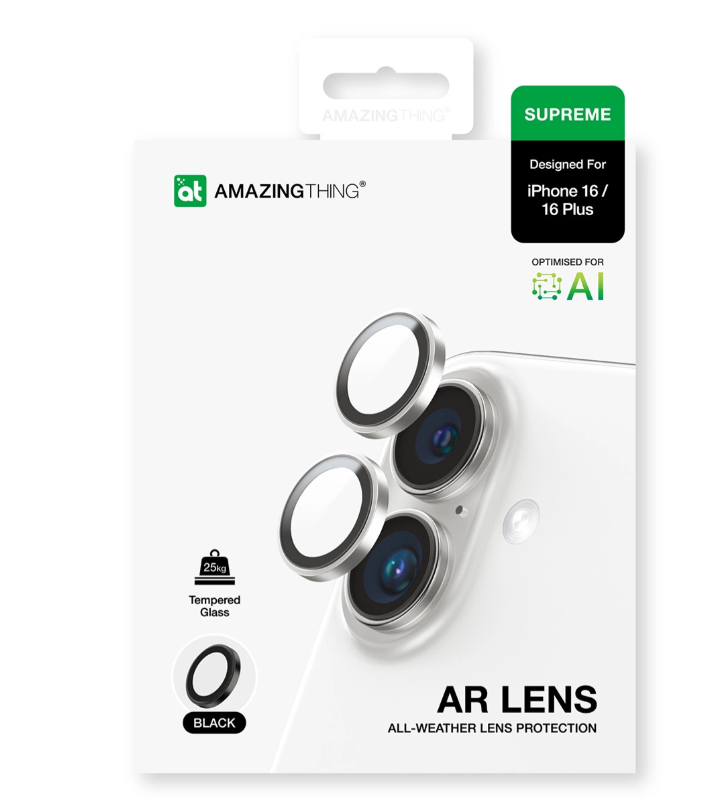 Kaitseklaas AmazingThing tagakaamerale iPhone 16/ 16 Plus (must)