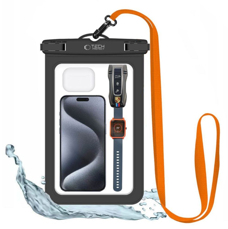 Kaitseümbris veekindel Tech-Protect UWC9 8.9 (must / oranž)