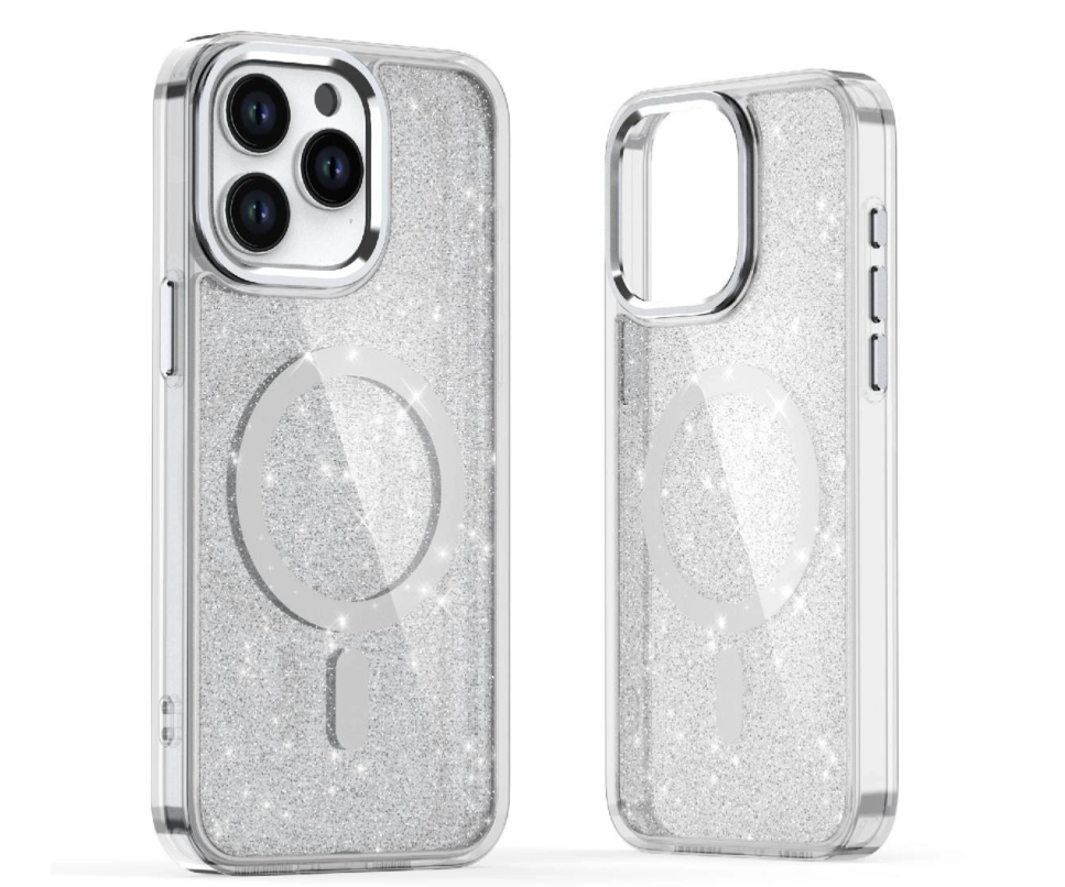 Ümbris Glitter MagSafe iPhone 16e (läbipaistev)
