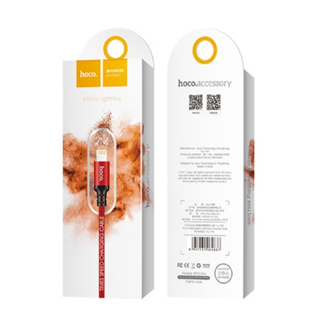 USB juhe Hoco X14 Iphone 5/ 5S/ 6/ 7 (1m/ punane)